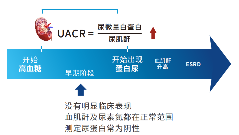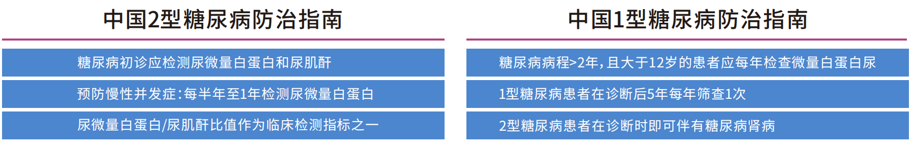 推薦診斷指標:隨機尿測定UACR(尿白蛋白/肌酐比值);推薦所有T2DM患者和病程5年以上的1型糖尿病患者每年應(yīng)至少進行1次UACR檢測,以便早期發(fā)現(xiàn)DKD。