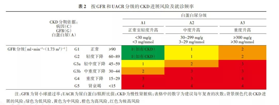 在確診DKD后,應根據GFR及尿白蛋白水平進一步判斷CKD分期,同時評估DKD進展風險及明確復查頻率。