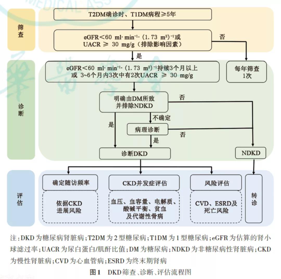 目前DKD通常是根據持續存在的白蛋白尿和(或)eGFR下降、同時排除其他原因引起的CKD而做出的臨床診斷。在明確DM作為腎損害的病因并排除其他原因引起CKD的情況下,至少具備下列一項者可診斷為DKD。