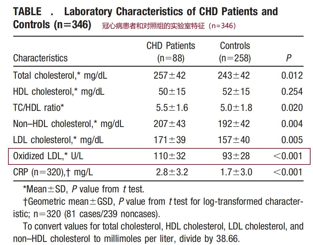 ①研究結果表明,與標準血脂變量和其他傳統的冠心病風險因素相比,ox-LDL是一種更強的風險預測因子,證明了ox-LDL與未來冠心病事件之間的密切聯系。
