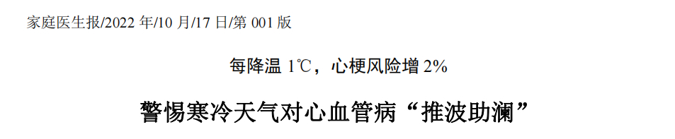 炎癥是百病之源。大量證據表明,心血管疾病與炎癥密不可分,而冬季是急性呼吸道感染的高發季節,呼吸道感染會加速冠心病患者心功能的惡化,增加其死亡率。此外,寒冷天氣刺激冠狀動脈痙攣誘發心絞痛、冬季塵埃顆粒的低空聚集、固體燃料如煤炭、木材等取暖造成的空氣污染等,均會顯著增加心血管疾病發病及死亡的風險。